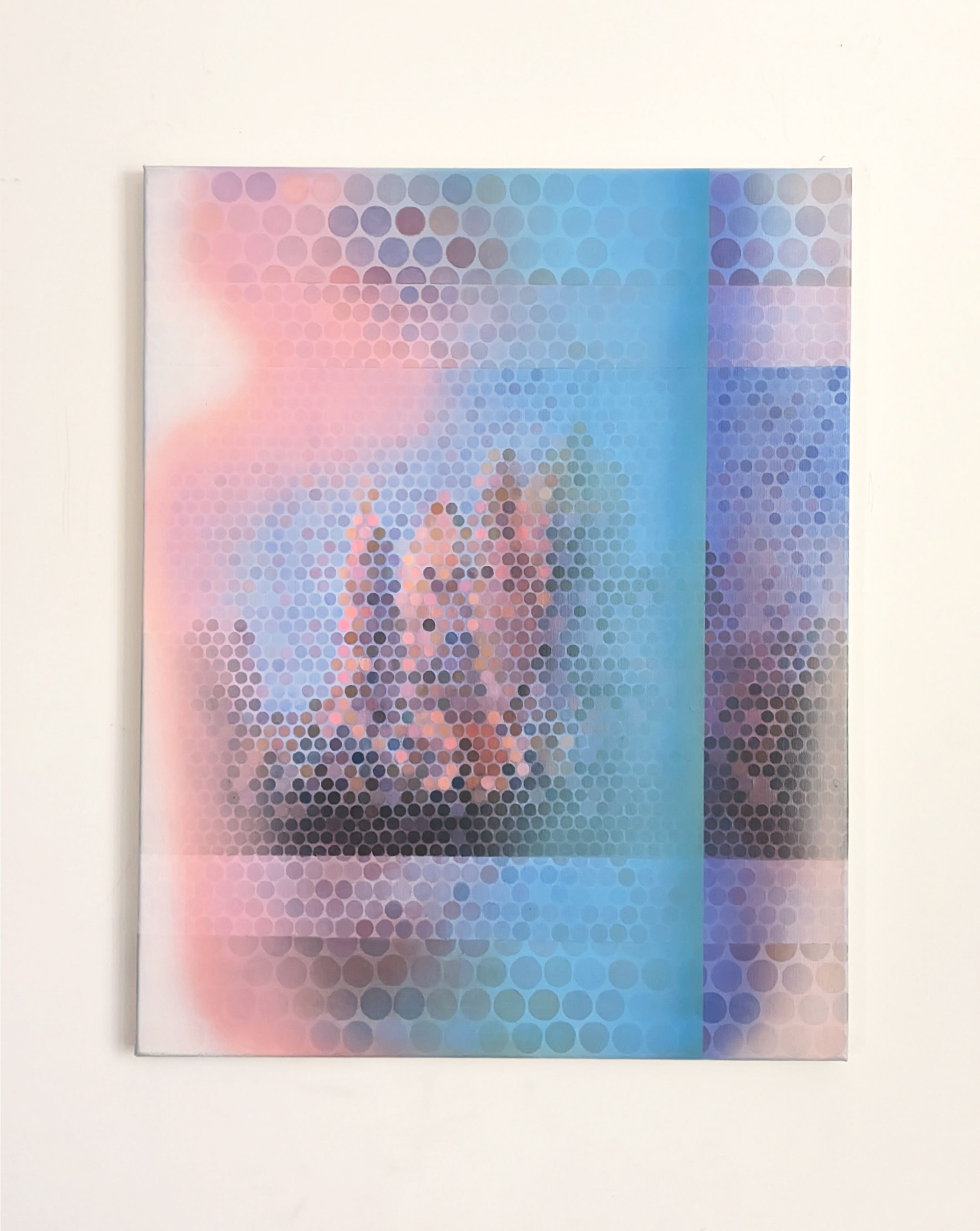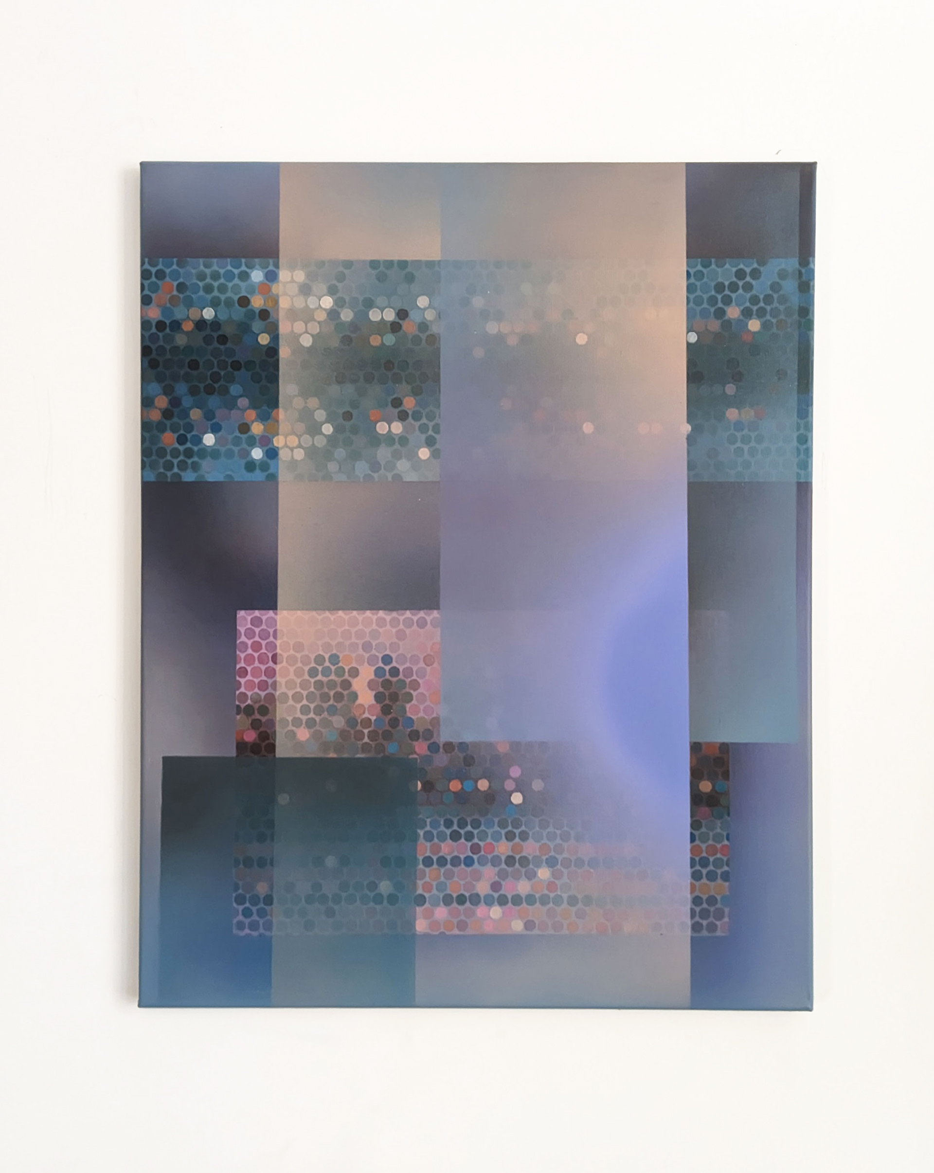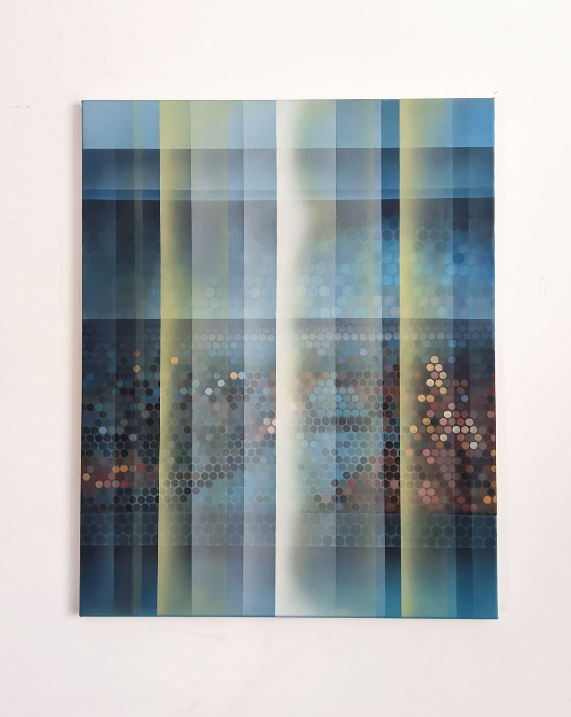 The Burnmarks series explores the interplay between human memory and digital reality. At the center of the project is the visual transformation of memories from an organic, natural perception into a pixelated, fragmented digital interpretation. The paintings depict landscapes that begin to break apart into mosaic-like elements, similar to digitized memories. This process highlights how technology shapes the perception of the past, turning vivid memories into something distant, abstract, and mechanical. It reflects on how traditions gain new meanings in this transformation.