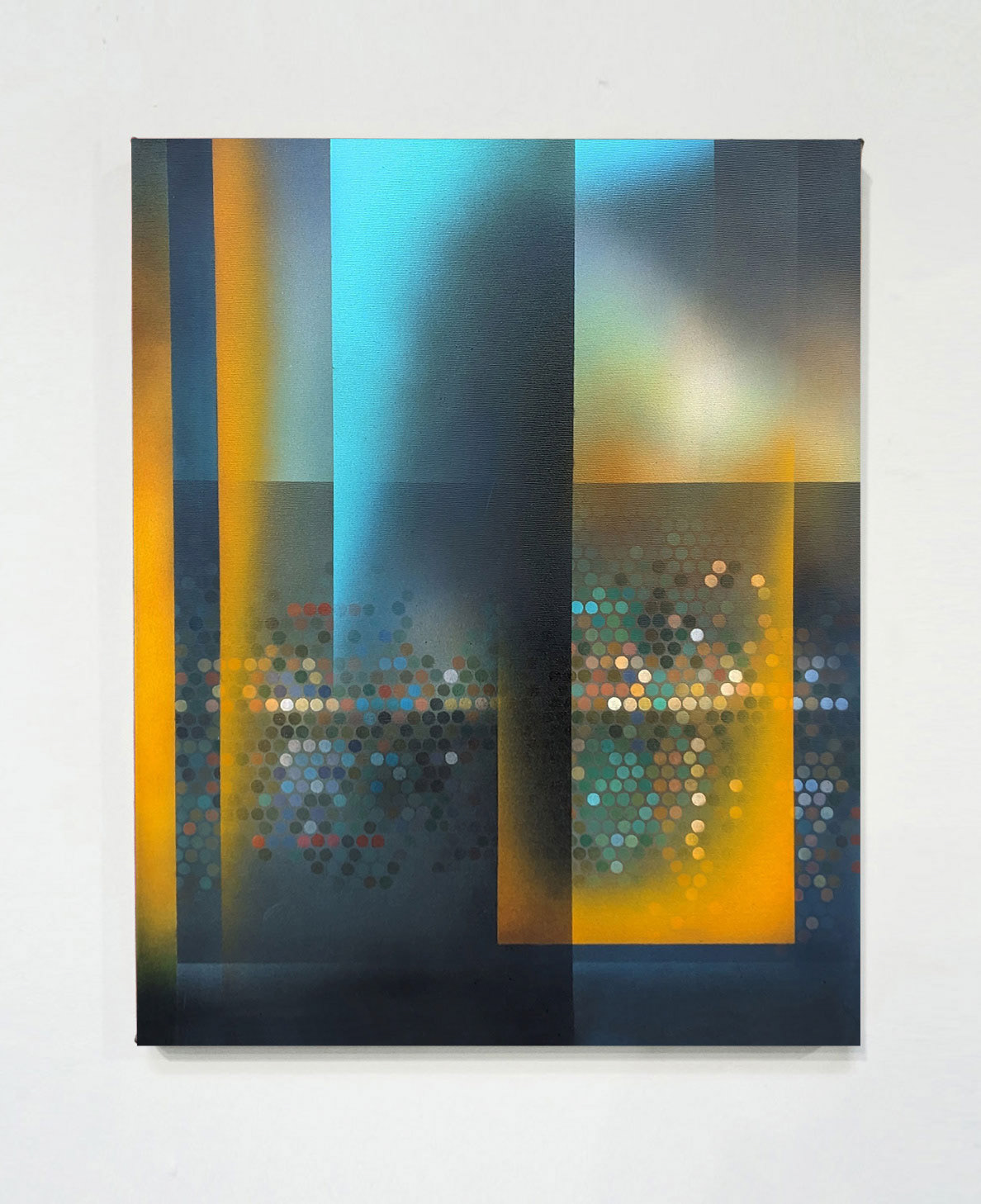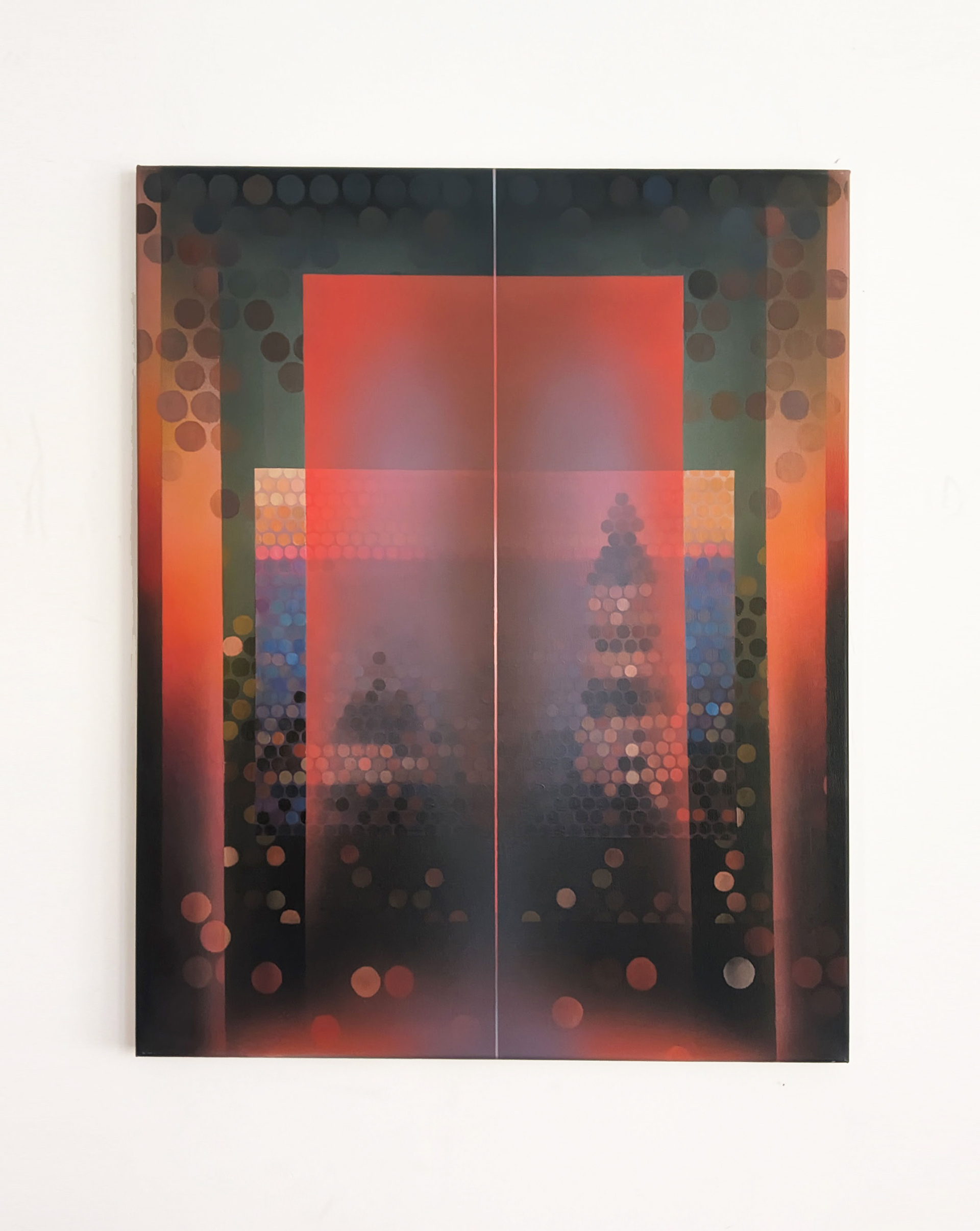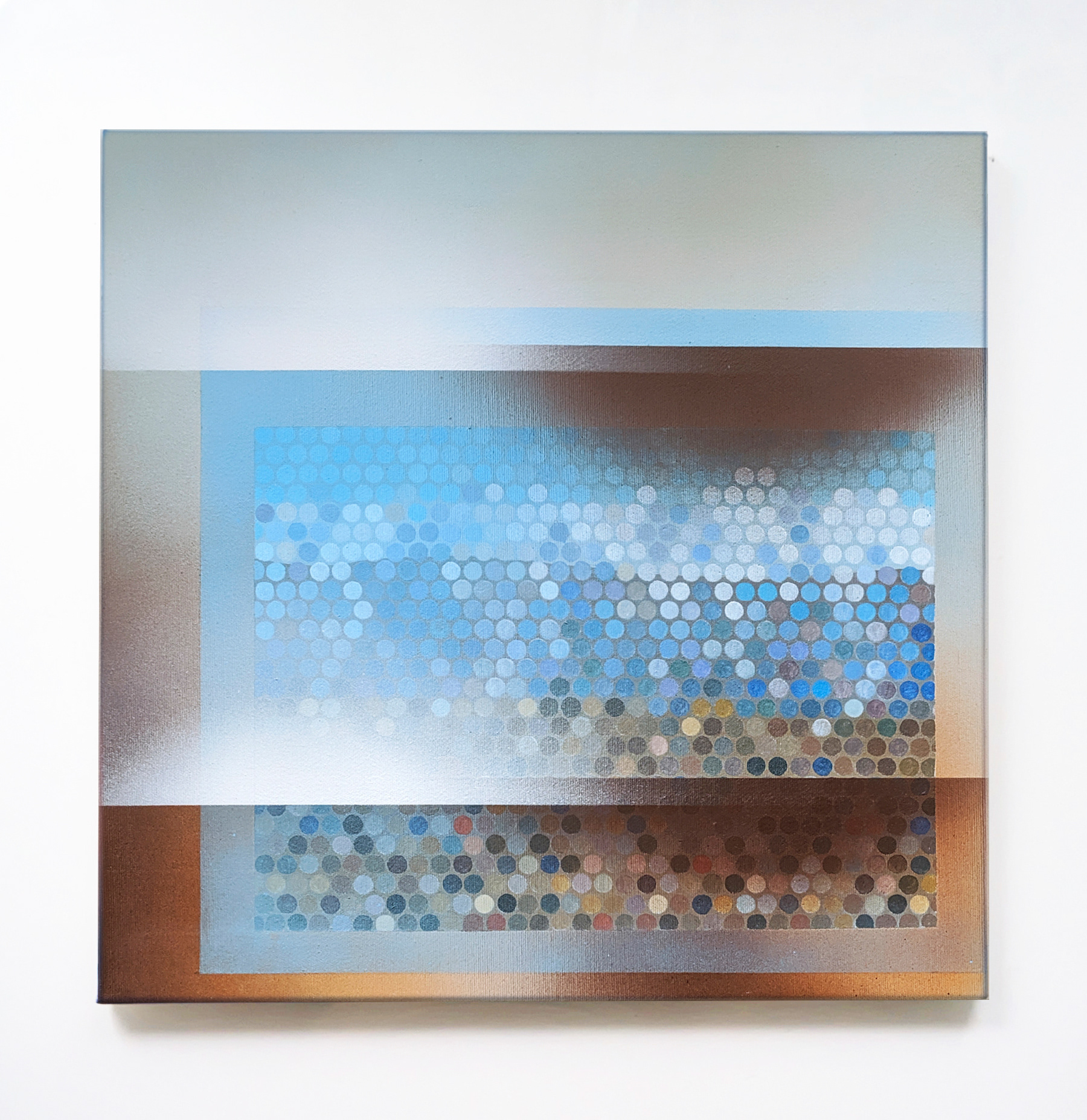 The Burnmarks series explores the interplay between human memory and digital reality. At the center of the project is the visual transformation of memories from an organic, natural perception into a pixelated, fragmented digital interpretation. The paintings depict landscapes that begin to break apart into mosaic-like elements, similar to digitized memories. This process highlights how technology shapes the perception of the past, turning vivid memories into something distant, abstract, and mechanical. It reflects on how traditions gain new meanings in this transformation.